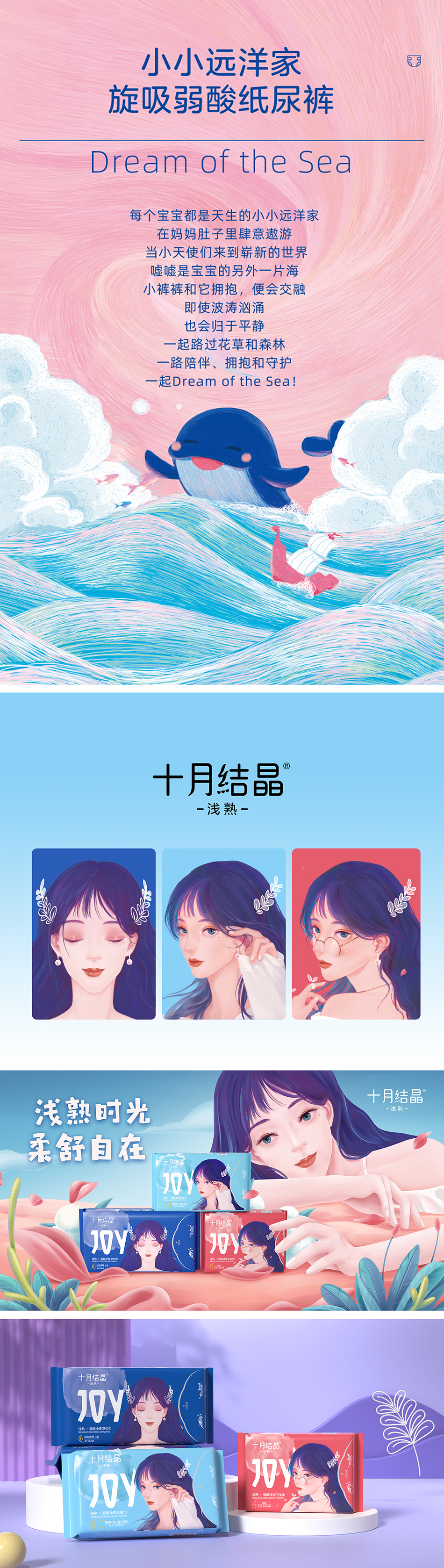 服務方案:圍繞產(chǎn)品主題訴求展開新的產(chǎn)品形象塑造,根據(jù)不同的產(chǎn)品屬性分別以符合主題的場景式插畫表現(xiàn)賣點和訴求,嬰童類產(chǎn)品著重展現(xiàn)美妙童趣,女性護理產(chǎn)品刻畫女性淺熟之美,有效強化產(chǎn)品個性及價值。