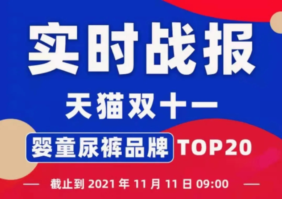 2021年10月20日晚8點,天貓雙十一預(yù)售正式開啟,截止到11月11日9:00,天貓雙十一紙尿褲排名榜單TOP20出爐。