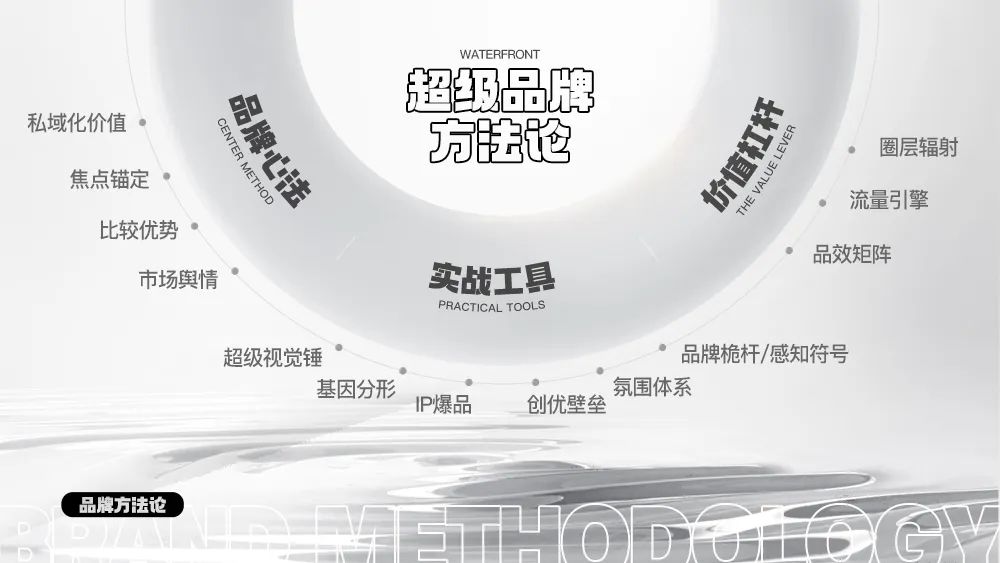 作為中國生活消費(fèi)品行業(yè)品牌管理服務(wù)商,立足于行業(yè)市場(chǎng)洞察和發(fā)展趨勢(shì),在水一方潛心多年自主完善并建立了企業(yè)品牌方法論,重點(diǎn)圍繞品牌心法、實(shí)戰(zhàn)工具及價(jià)值杠桿構(gòu)建出全案品牌系統(tǒng)。