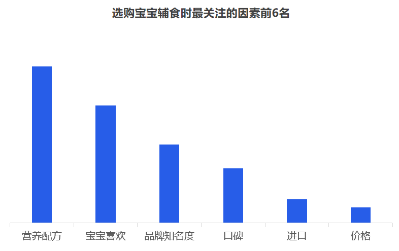 但是對于品牌而言,最重要的是洞察需求,一個好的洞察,一定是清晰揭示消費者的傾向,暗示了一個市場機會。究竟品牌入局輔食的機會有多大,媽媽們是如何看待輔食的? 從當前的嬰幼兒用品的采購情況來看,媽媽負責嬰幼兒用品的采購,用戶占比超七成。奶爸也會經常協(xié)助寶媽,參與到嬰幼兒用品的采購活動中,用戶占比為41.7%。 從近一年的百度指數來看,目前關注輔食最突出的地域是廣州、浙江、江蘇、山東、北京等,可見,當前一二線城市的消費者對輔食的認知教育有所提高,但是低線城市的消費者對寶寶輔食的添加還不重視。 其次,從年齡段來看,“30-39歲”的消費人群對輔食的關注度最高,而在這其中,女性對輔食的關注度遠高于男性。 2019年母嬰行業(yè)觀察通過線上調研近10000人數的家長進行了輔食調查,其中80后占據24%,85后占據26%,90后44%,95后4%,對輔食的態(tài)度如下: 1、幾乎所有的媽媽都認為有必要給寶寶添加輔食,并且有一半的媽媽認為要在6個月時添加,而有32%的媽媽認為在6個月-1歲開始添加,還有16%的人在6個月以前就添加輔食。 2、大部分寶寶的輔食來源都是“購買與自制”相結合,而在購買輔食時,媽媽們購買最多的類型依舊是米粉,其次則是餅干、磨牙棒等小食品、營養(yǎng)面等。 3、互聯(lián)網與社交圈對媽媽的購買決策權的影響力較大,據調查顯示,媽媽們第一次接觸或選擇輔食大多都是通過親朋好友推薦,上網查詢等。當然消費者在購買嬰兒輔食的渠道選擇上,其實與奶粉并無不同,為了保證產品的質量和安全性,同時也為了可以得到育嬰專家的指導和幫助,消費者更傾向于在專業(yè)的母嬰用品連鎖店或主流電商平臺購買食品。 4、隨著85后、90后新生代父母的崛起,他們與父輩的消費觀念并不相同,不再執(zhí)著與于進口與價格等,而是開始關注是營養(yǎng)配方,重要的是寶寶喜歡。 5、對于寶寶而言,自添加輔食開始,都是與奶粉喂養(yǎng)相結合,目前超一半的寶寶每天食用輔食的頻率都是一天兩頓。當然這在一定程度上也決定了每個月在寶寶的輔食上的花費是多少,從月消費來看,可以明顯看出200以內的將近半數,當然也可以看出花費在300以上的有21%,可見,對于嬰兒食品這個特殊的品類,以及嬰幼兒這個特殊的消費人群,消費持續(xù)升級仍然明顯。近兩年來,嬰幼兒輔食高端化、有機化趨勢明顯。 近幾年來,越來越多的媽媽意識到輔食的重要性,隨著我國居民可支配的收入不斷提高,消費者投入了更多的關注給自己的孩子,作為寶寶的第二餐,消費者愿意投入更多費用,使用周期會不斷變長,且更注重輔食產品的品質和質量。可見隨著消費水平的提升,年輕父母對于對孩子的飲食質量、飲食營養(yǎng)的投入更加重視,會更追求高附加值、高品質的輔食,中國輔食市場會繼續(xù)高速發(fā)展。