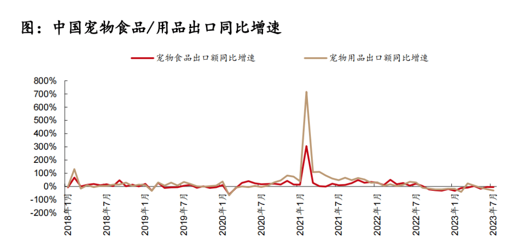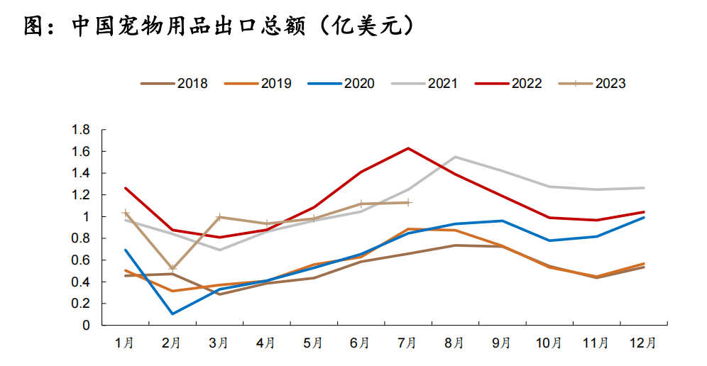 中國(guó)是主要寵物用品生產(chǎn)國(guó),用品出口逐漸從底部回暖